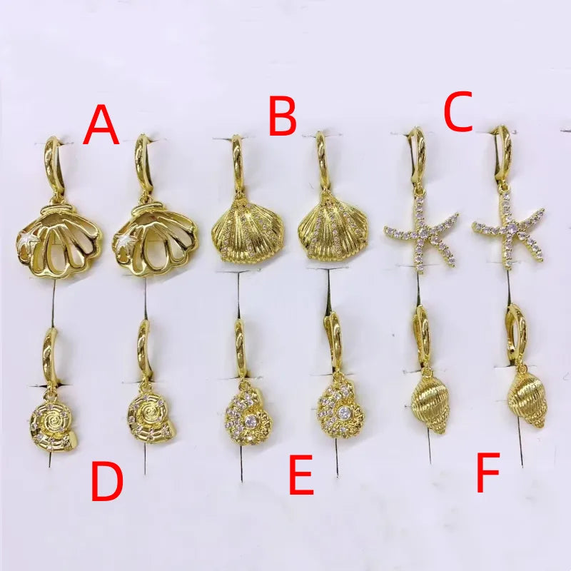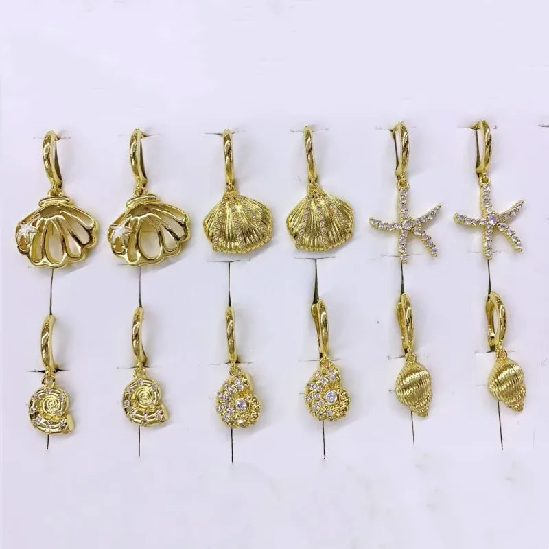 1 Pair/Package Casual Marine Style Modern Style Starfish Conch Shell Polishing Inlay Copper Zircon 18K Gold Plated Drop Earrings