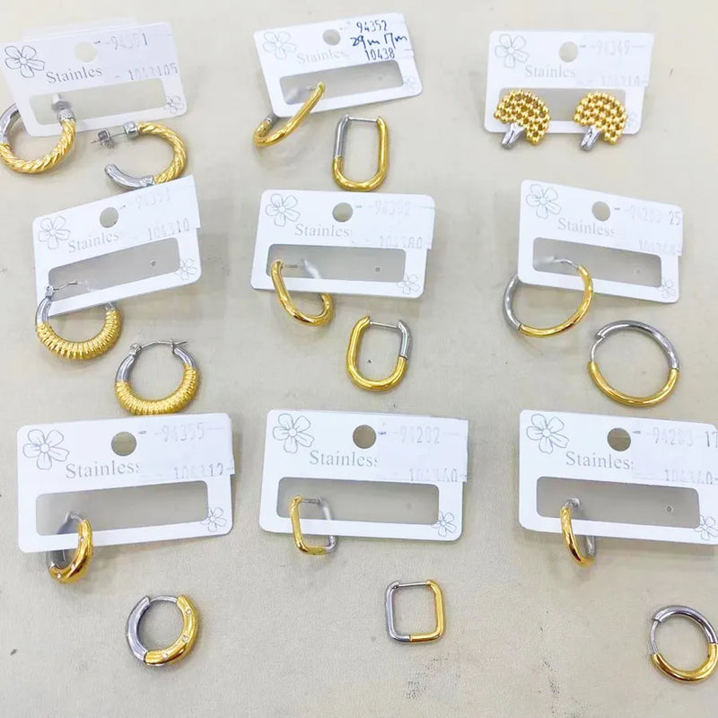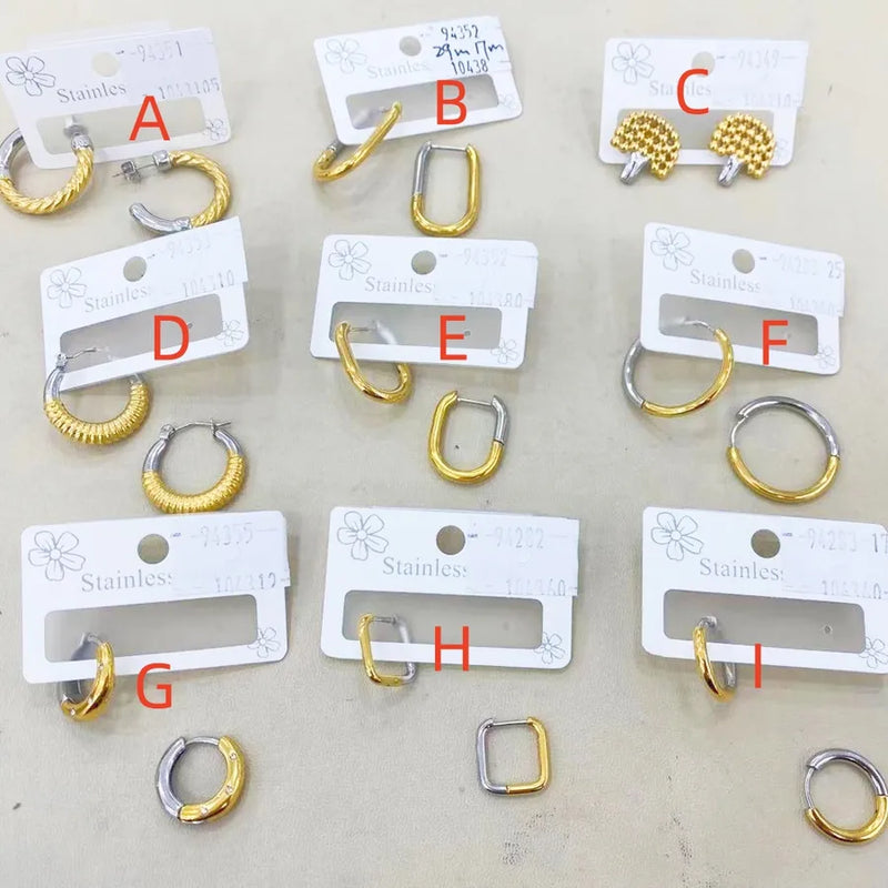 1 Pair/Package Casual Modern Style Simple Style C Shape Round Square Polishing Mixed Metal Plating 304 Stainless Steel 18K Gold Plated Earrings