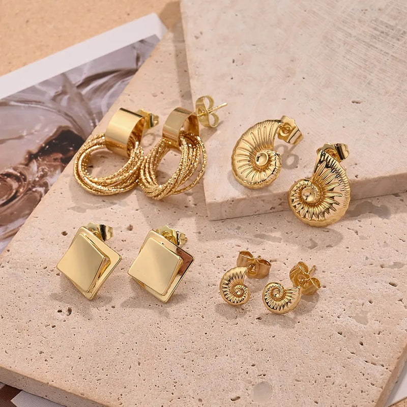 1 Pair/Package Casual Modern Style Simple Style Circle Rhombus Wheel Screw Handmade Polishing Plating Copper 18K Gold Plated Ear Studs