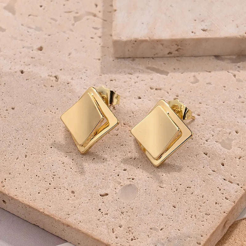 Light Gold Shuangling-Shaped Stud Earrings (Gold)