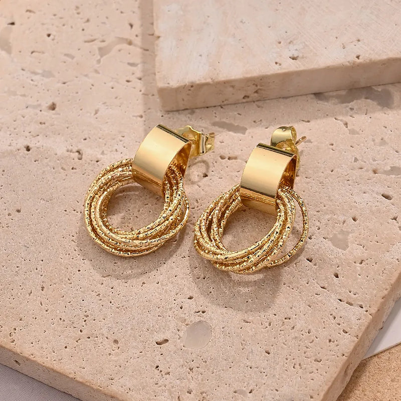 Light Gold Large Wheel Stud Earrings (Gold)【18x15mm】