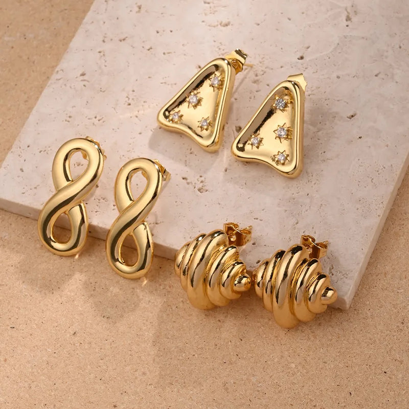 1 Pair/Package Casual Modern Style Simple Style Eight awn star Infinity Honeycomb Handmade Polishing Plating Copper Zircon 18K Gold Plated Earrings