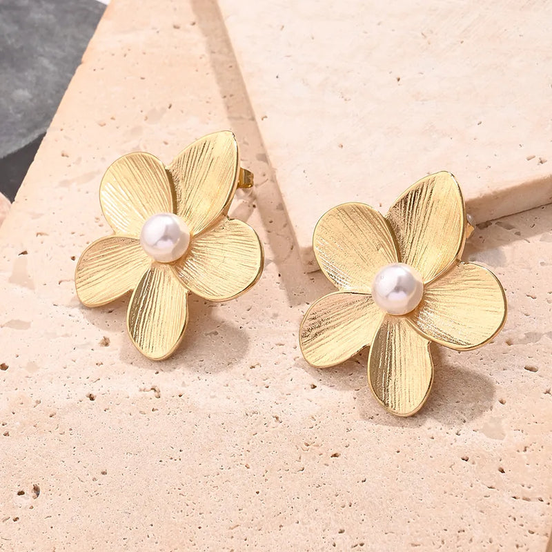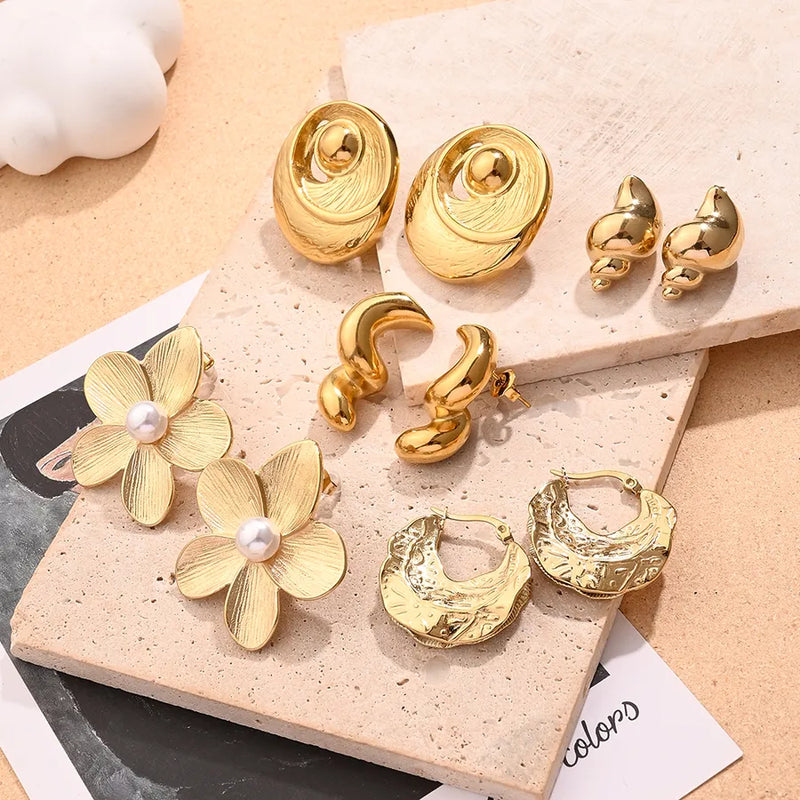1 Pair/Package Casual Modern Style Simple Style Round Conch Flower Handmade Polishing Plating 304 Stainless Steel 18K Gold Plated Earrings