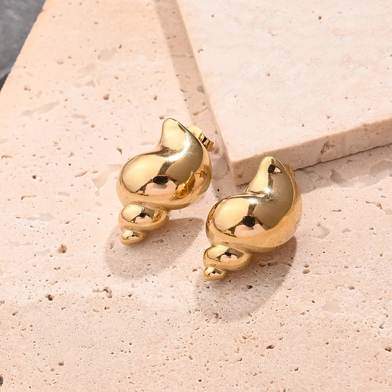 Light Gold Three-Dimensional Conch Earrings (Gold)