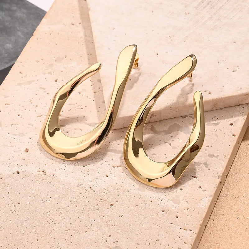 Embossed Long U-Shaped Earrings (Gold)