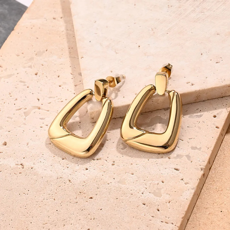 Light Gold Hollow Trapezoid Earrings (Gold)