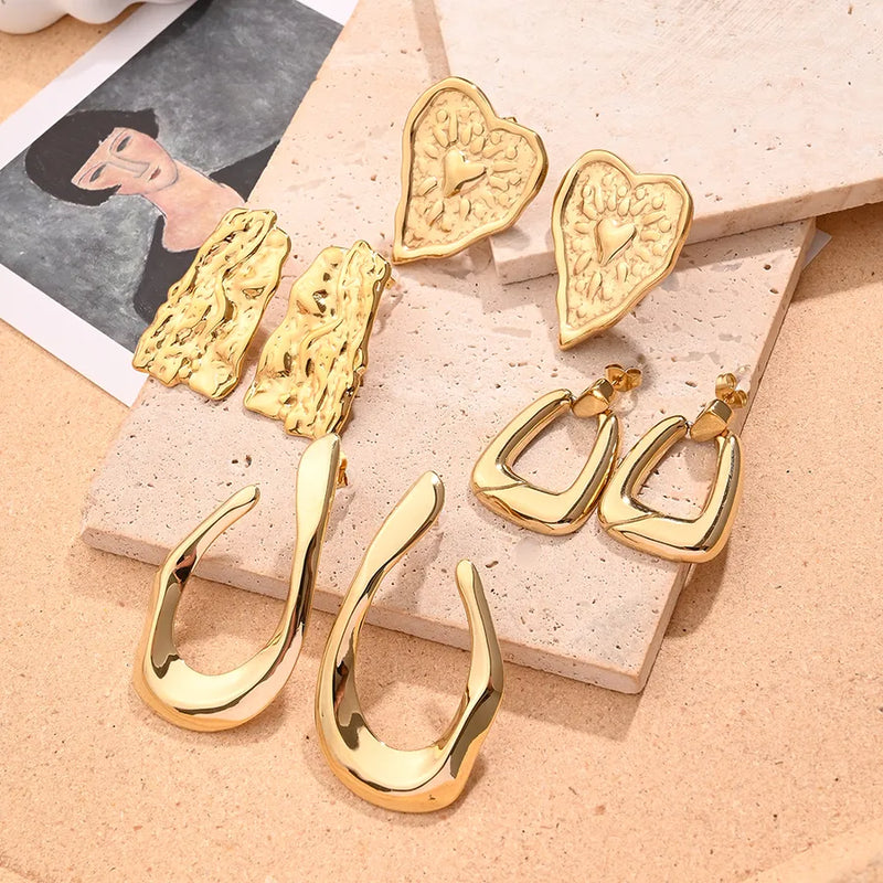 1 Pair/Package Casual Modern Style Simple Style U Shape Trapezoid Red Heart Handmade Polishing Plating 304 Stainless Steel 18K Gold Plated Earrings