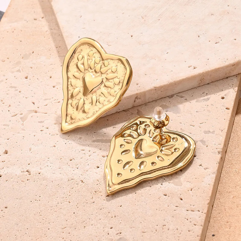 Embossed Double Love Heart Earrings (Gold)