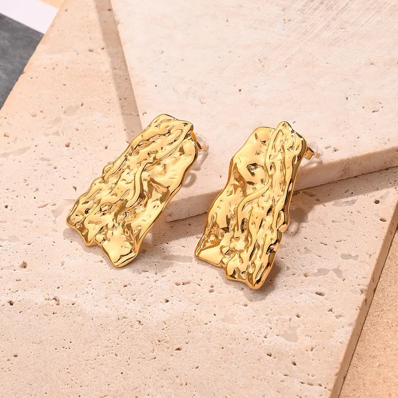 Embossed Trapezoidal Earrings (Gold)