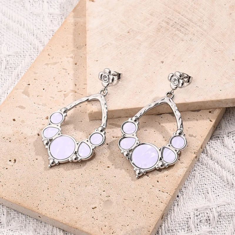 Rhinestone Flower & Hollow White Shell Water Drop Ear Studs (Steel Color)