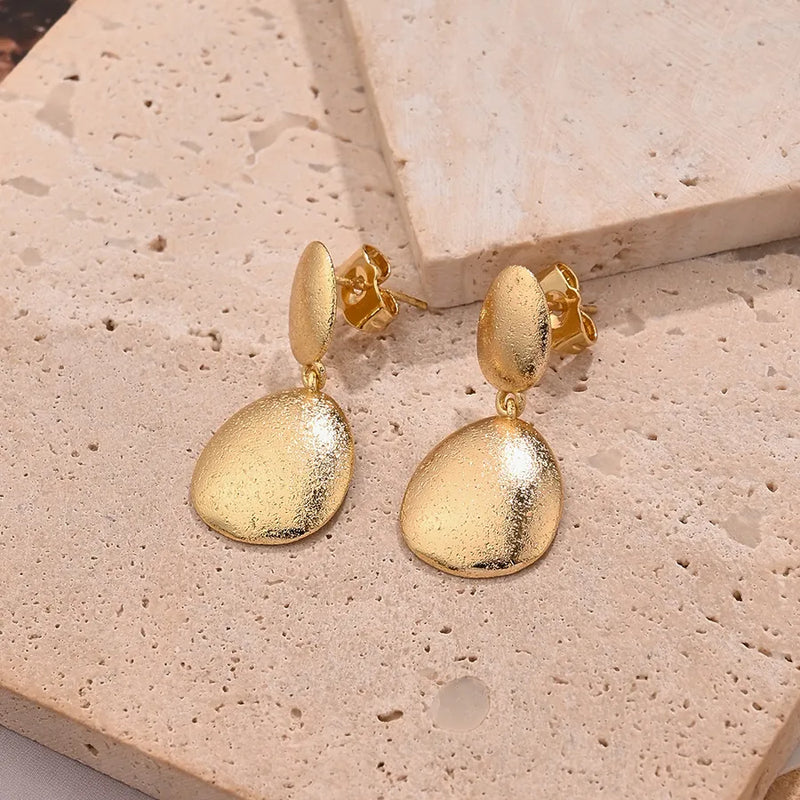 Sand Surface Water Drop-Shaped Earrings (Gold)