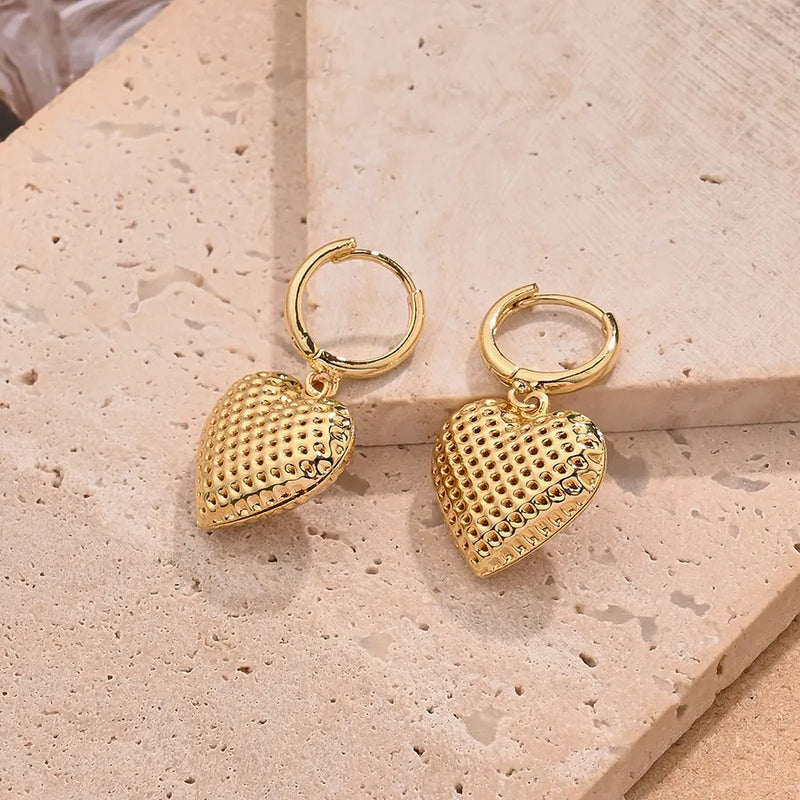 Hollow Dot Love Heart Earrings (Gold)