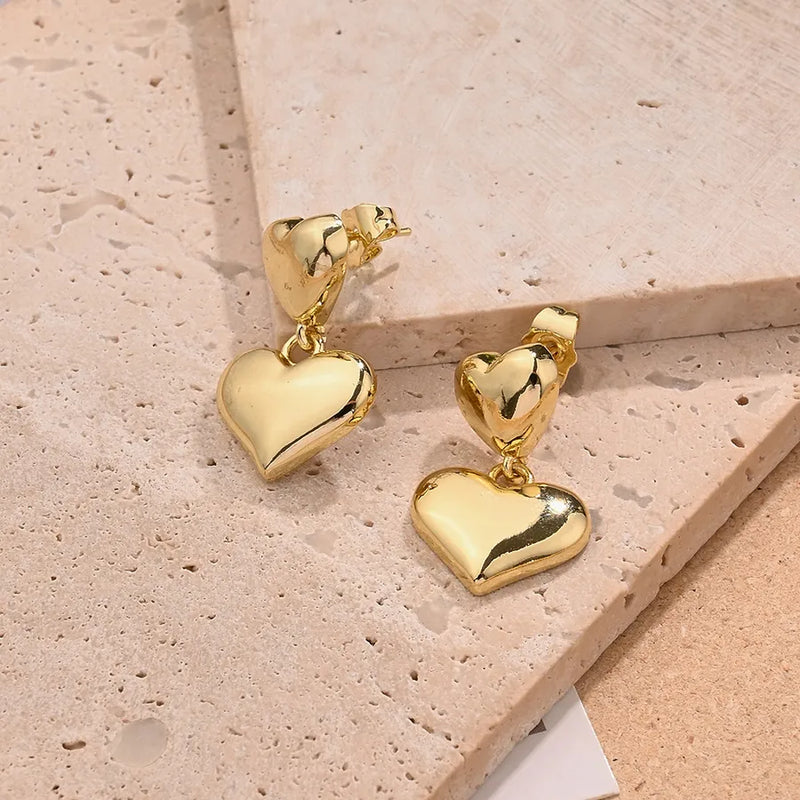 Light Gold Double Love Heart Stud Earrings (Gold)