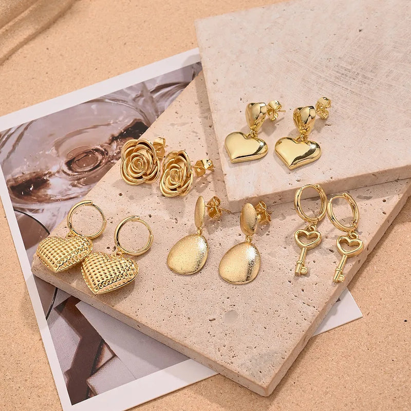 1 Pair/Package Casual Modern Style Simple Style Water Droplets Heart Shape Rose Handmade Polishing Plating Copper 18K Gold Plated Earrings Ear Studs