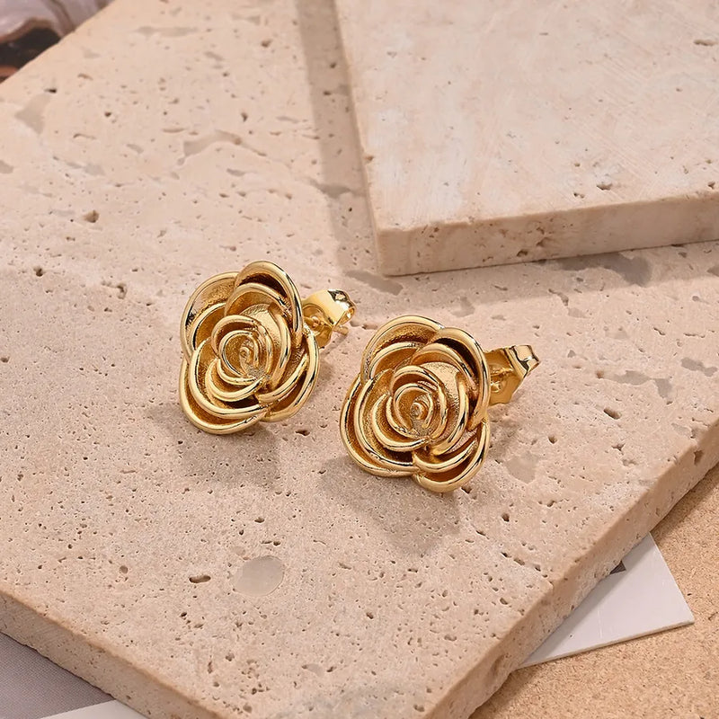 Light Gold Rose Ear Studs (Gold)