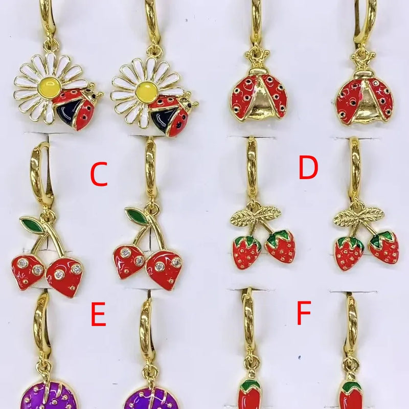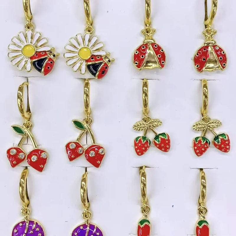 1 Pair/Package Casual Modern Style Sweet Beetles Strawberry chili Polishing Enamel Inlay Copper Zircon 18K Gold Plated Drop Earrings