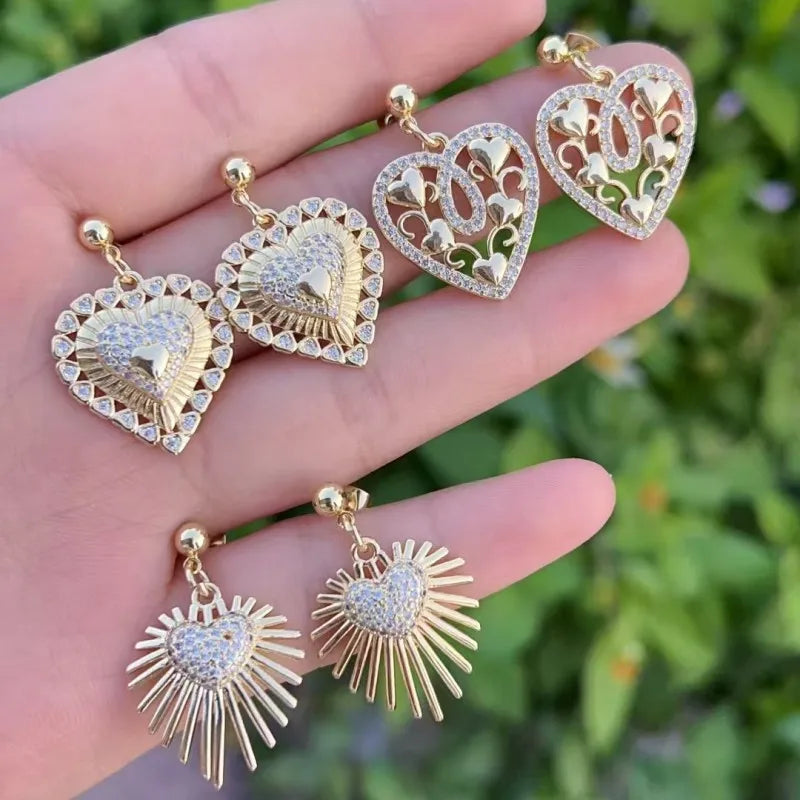 1 Pair/Package Casual Modern Style Sweet Heart Shape Polishing Hollow Out Inlay Copper Zircon 18K Gold Plated Drop Earrings