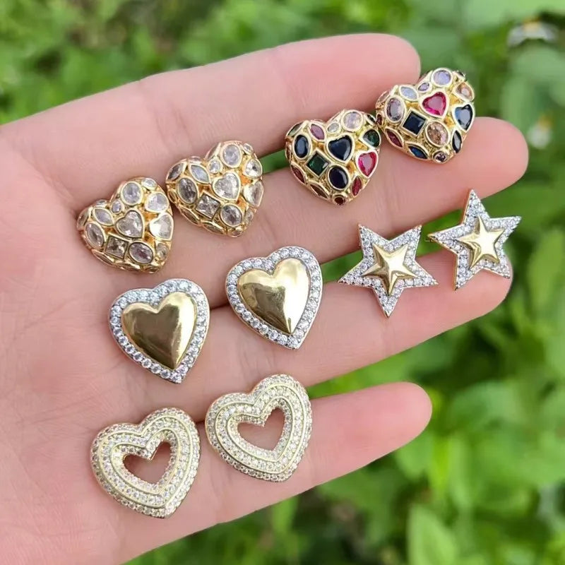 1 Pair/Package Casual Modern Style Sweet Star Heart Shape Polishing Inlay Copper Zircon 18K Gold Plated Ear Studs