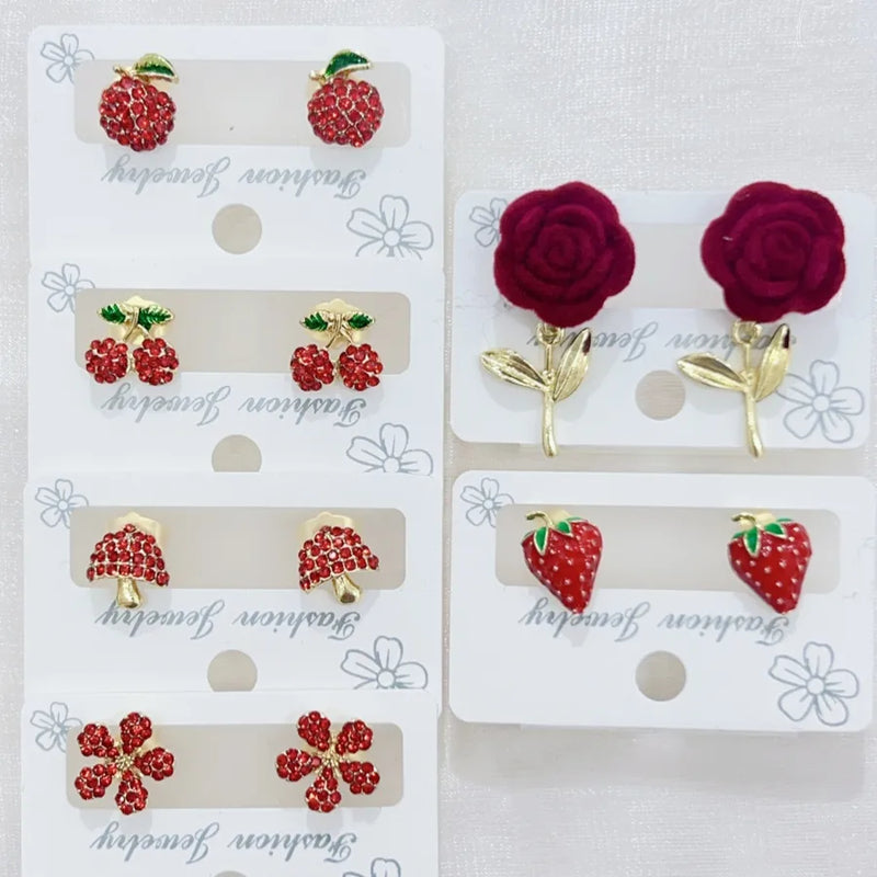 1 Pair/Package Elegant Sweet Cherry Rose Strawberry Plating Inlay Copper Zircon 18K Gold Plated Ear Studs