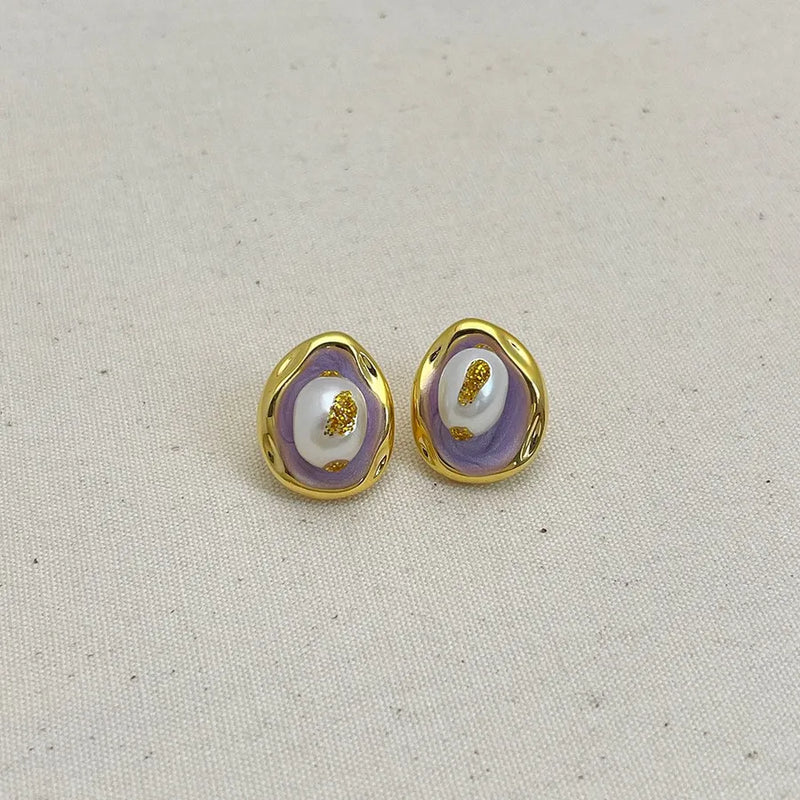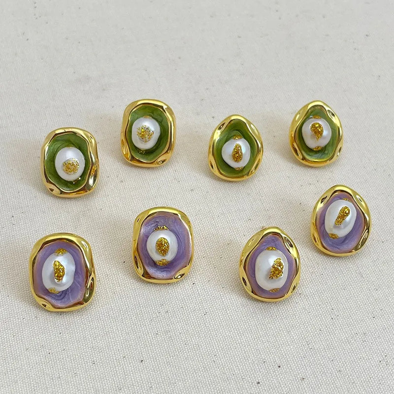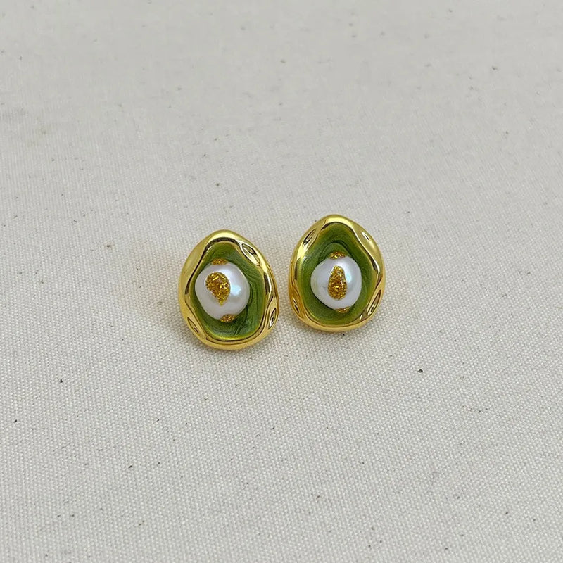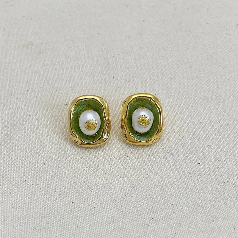 1 Pair Retro Baroque Style Geometric Inlay Copper Freshwater Pearl 18K Gold Plated Ear Studs