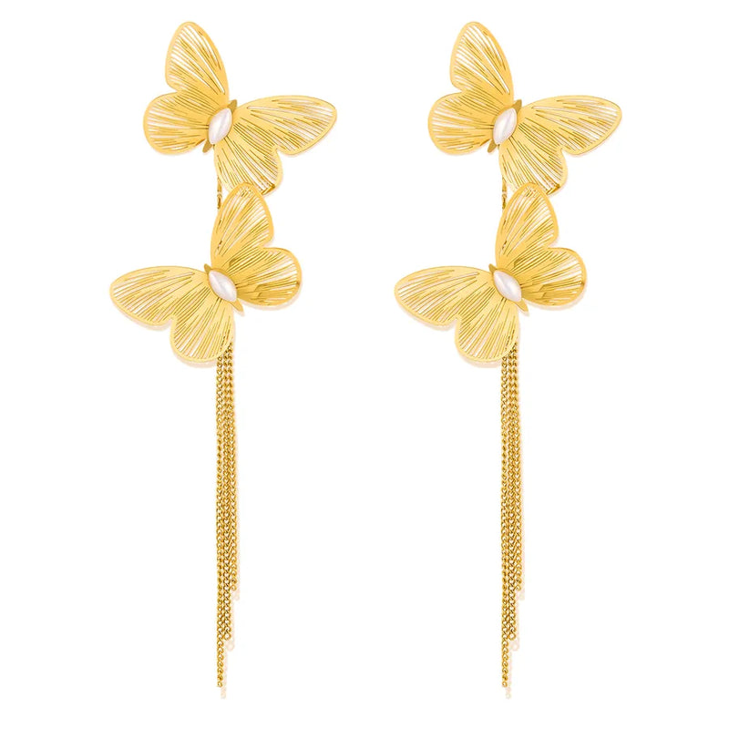 1 Pair Retro Butterfly 304 Stainless Steel Drop Earrings