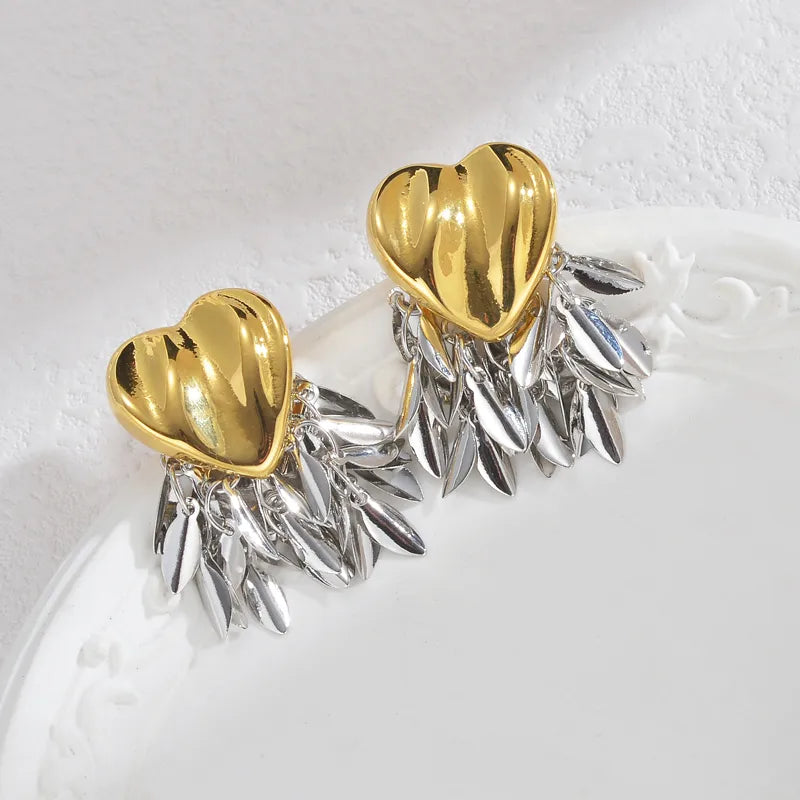 1 Pair Retro Lady Heart Shape 304 Stainless Steel 18K Gold Plated Drop Earrings