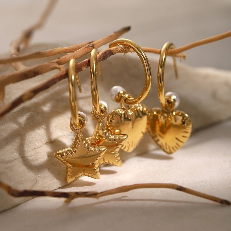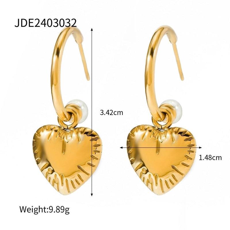 1 Pair Retro Sweet Simple Style Heart Shape 304 Stainless Steel 18K Gold Plated Drop Earrings