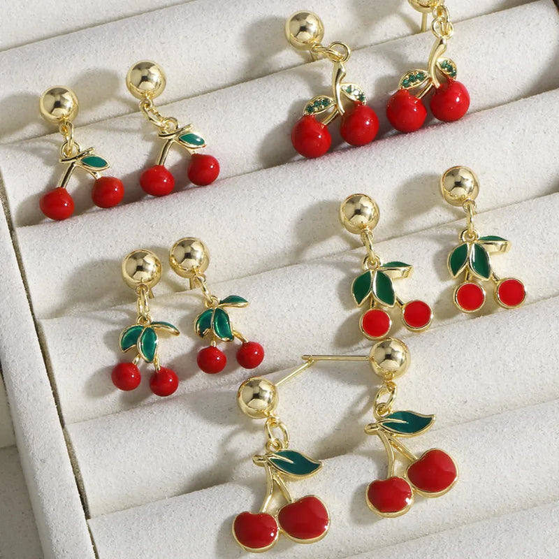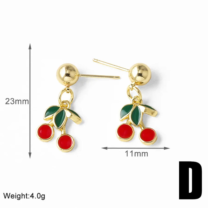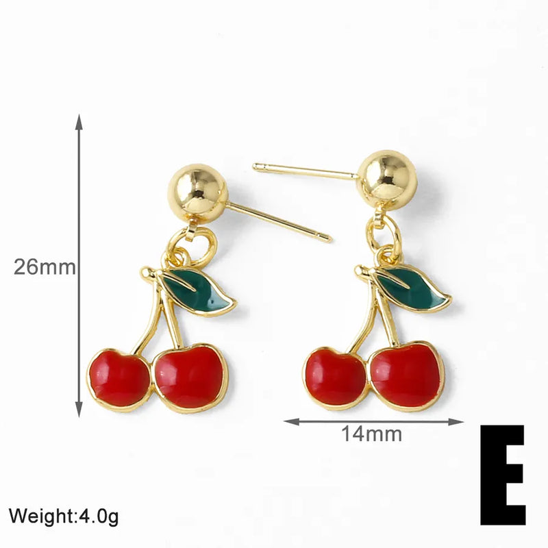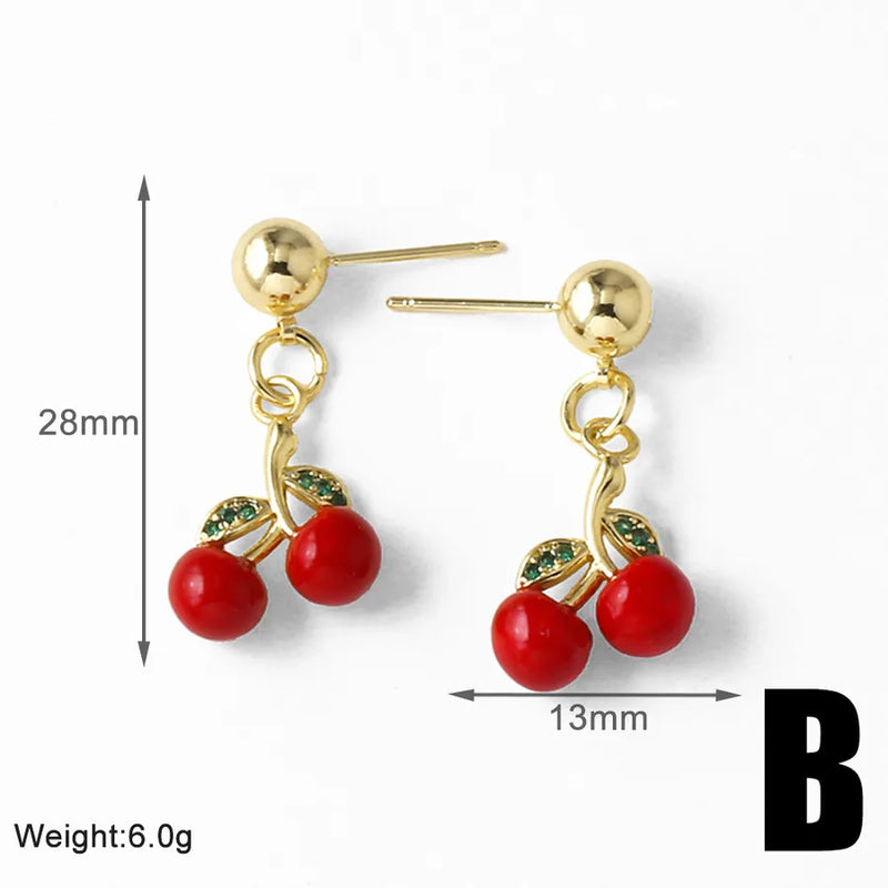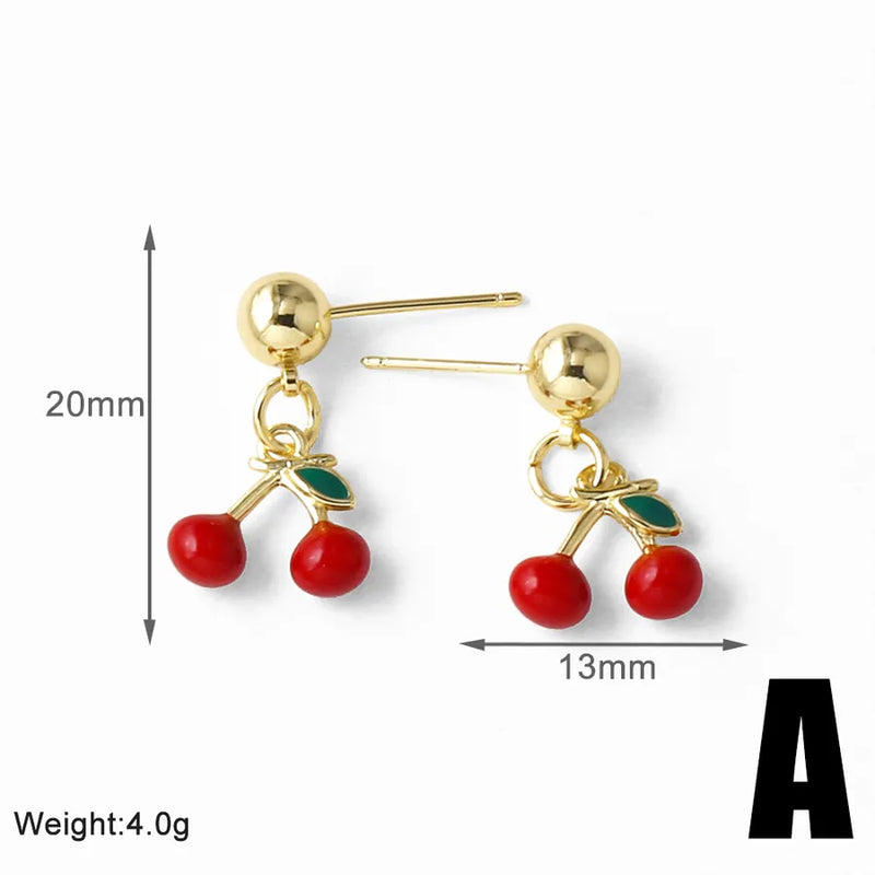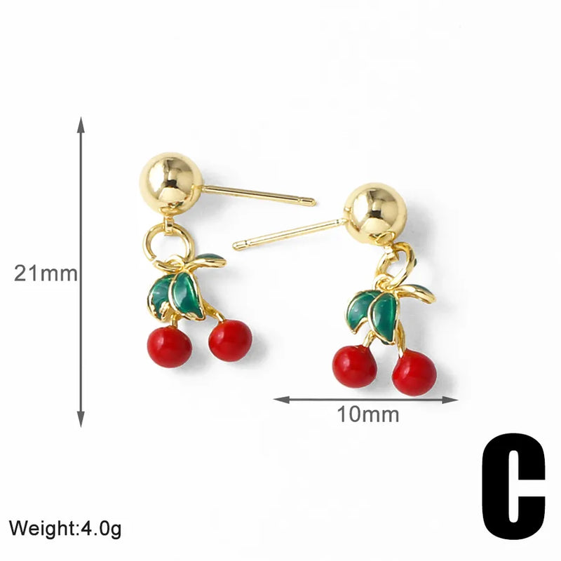 1 Pair Simple Style Cherry Plating Copper Zircon 18K Gold Plated Earrings