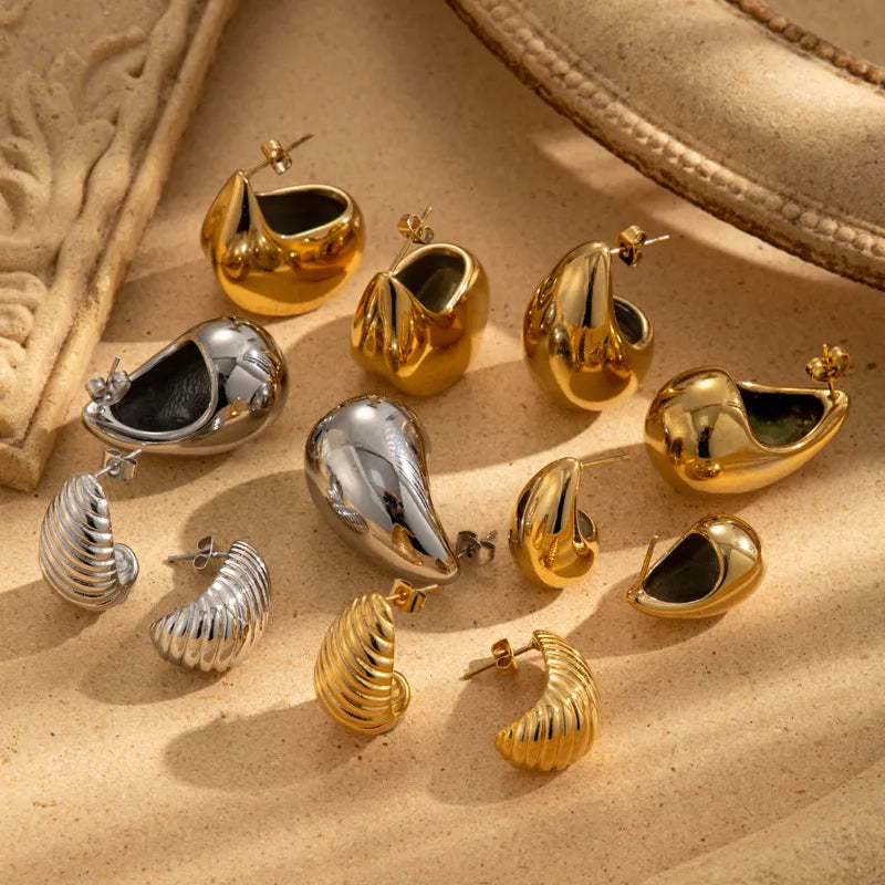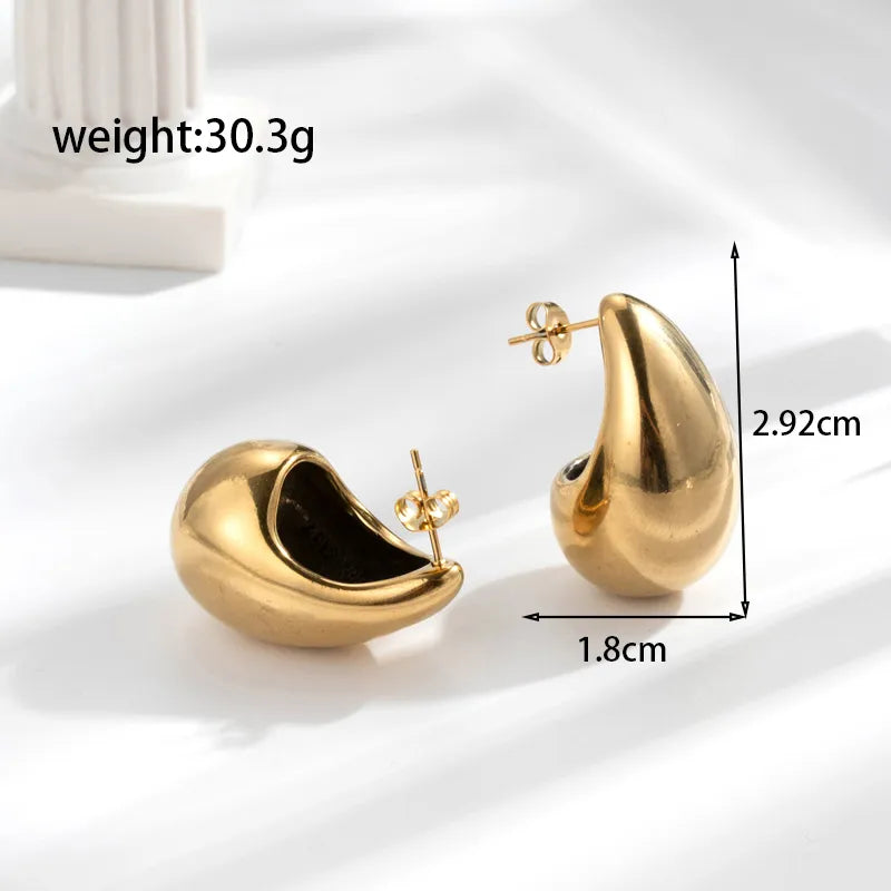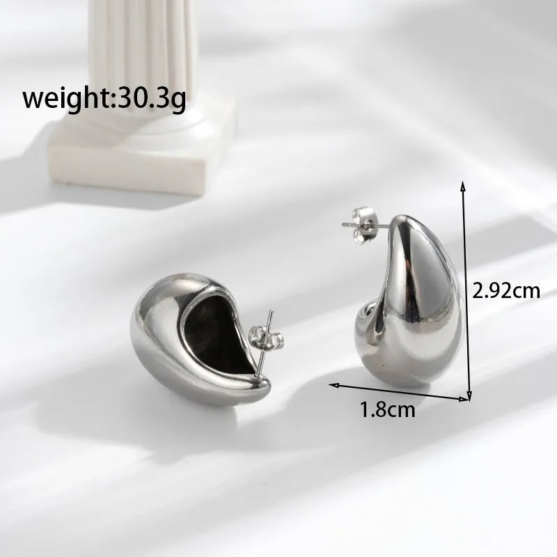 1 Pair Simple Style Classic Style C Shape Water Droplets Plating 304 Stainless Steel Ear Studs