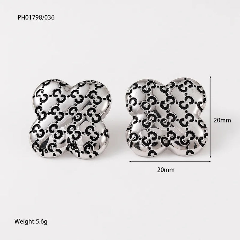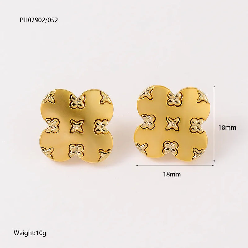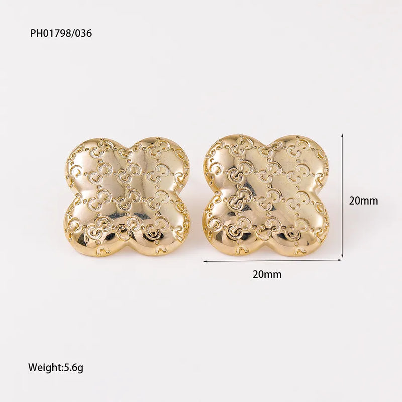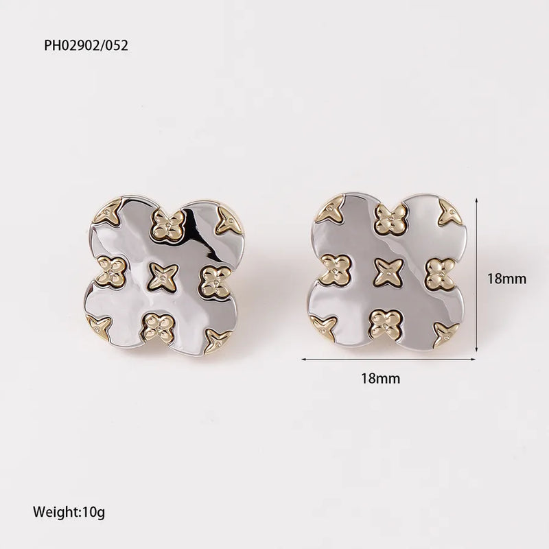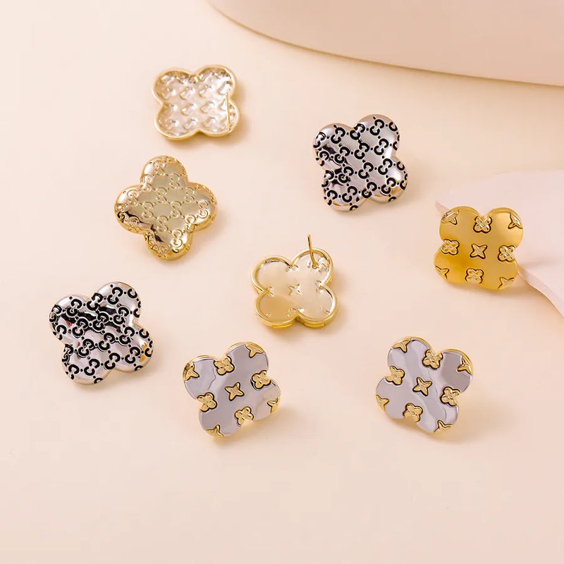 1 Pair Simple Style Four Leaf Clover Inlay Copper Ear Studs