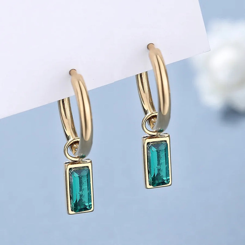 1 Pair Simple Style Rectangle Inlay Stainless Steel Zircon 18K Gold Plated Drop Earrings