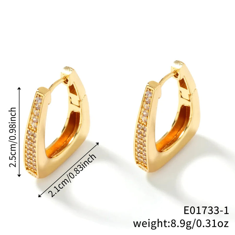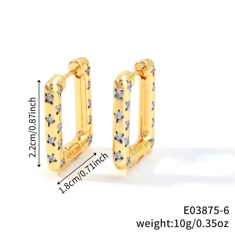 1 Pair Simple Style Shiny Solid Color Inlay Copper Zircon Rhodium Plated Earrings