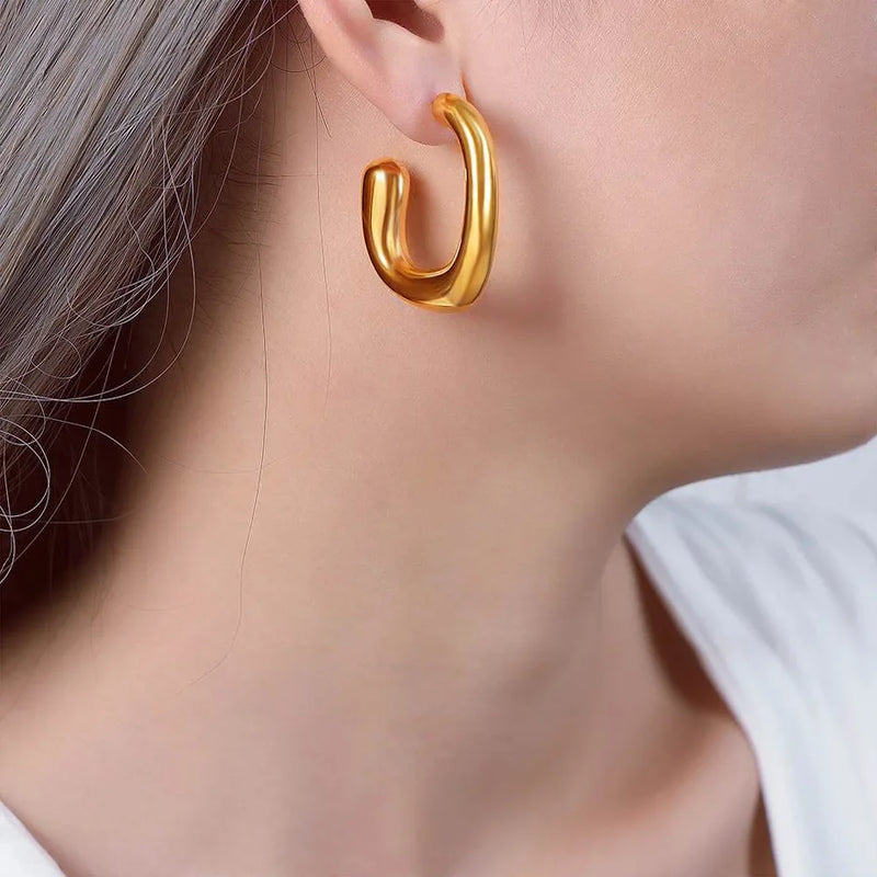1 Pair Simple Style Solid Color 304 Stainless Steel 18K Gold Plated Hoop Earrings