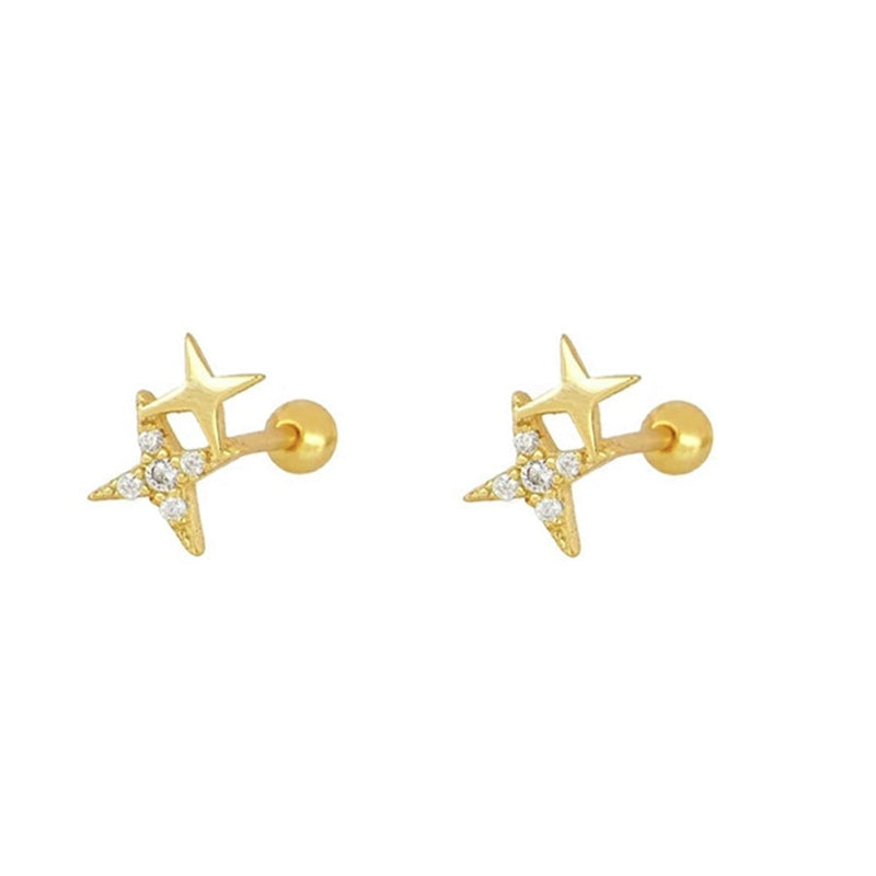 1 Pair Simple Style Star Copper Zircon 24K Gold Plated Ear Studs