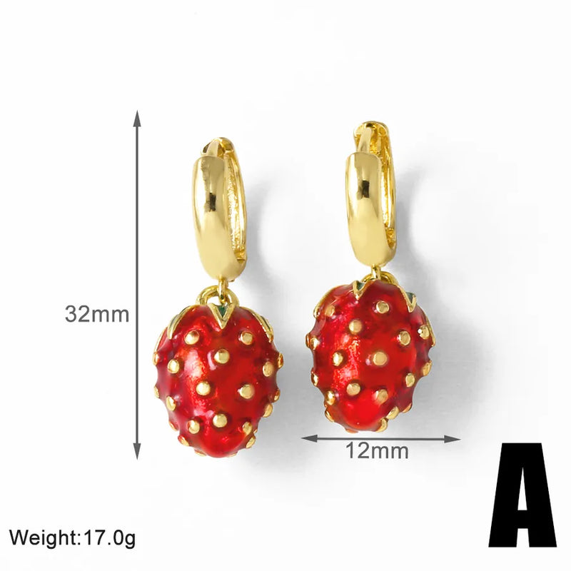 1 Pair Simple Style Strawberry Plating Copper 18K Gold Plated Drop Earrings