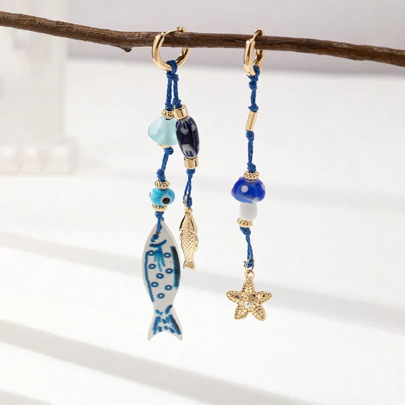 1 Pair Sweet Fish Alloy rope ceramics Drop Earrings