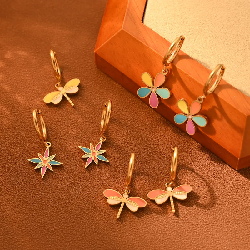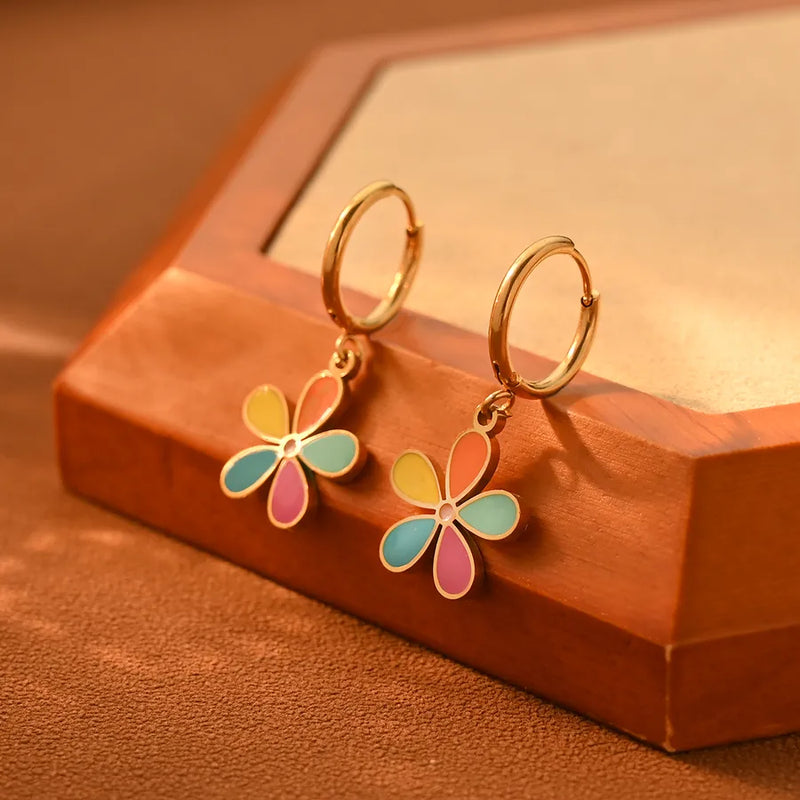 1 Pair Sweet Simple Style Color Block Plating 304 Stainless Steel 18K Gold Plated Drop Earrings