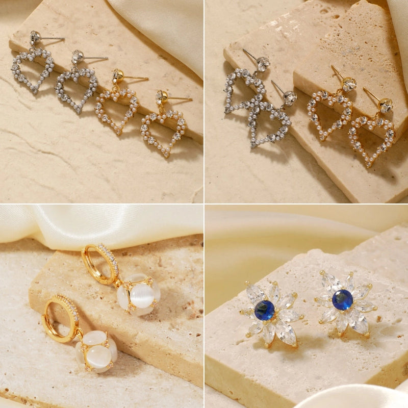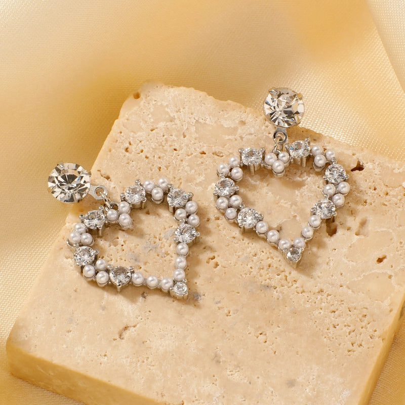 1 Pair Sweet Simple Style Shiny Geometric Heart Shape Inlay Copper Glass Zircon K Gold Plated Drop Earrings