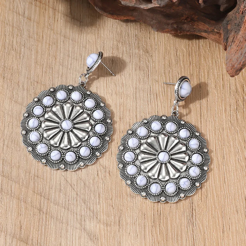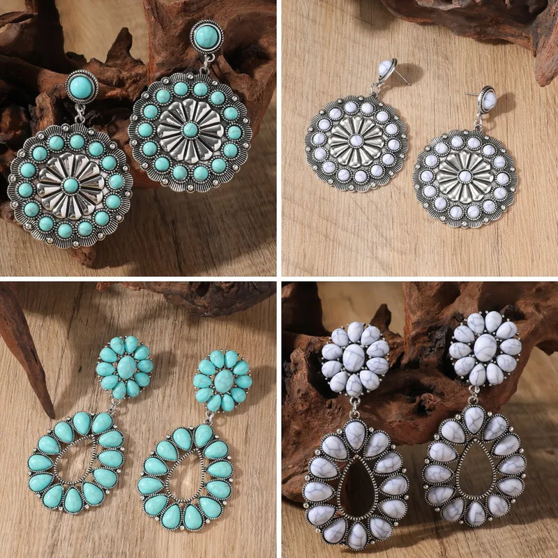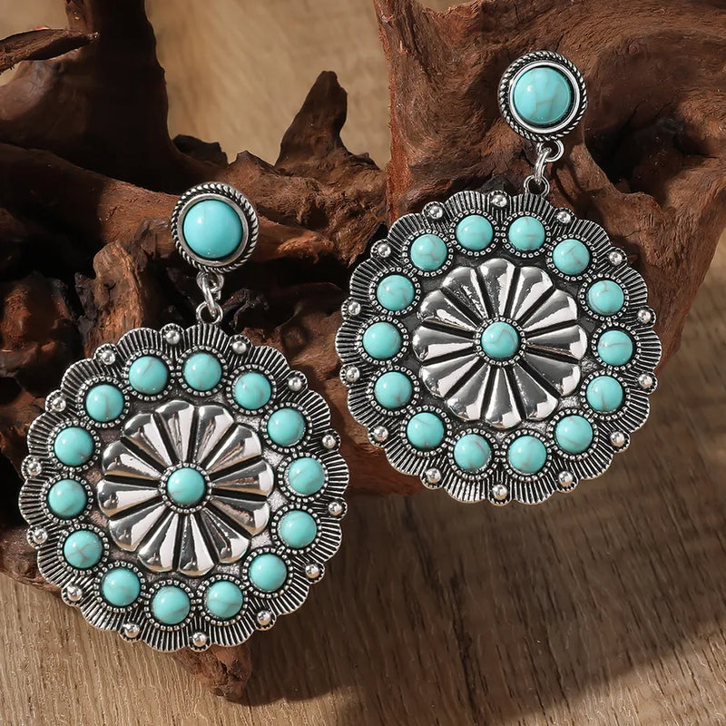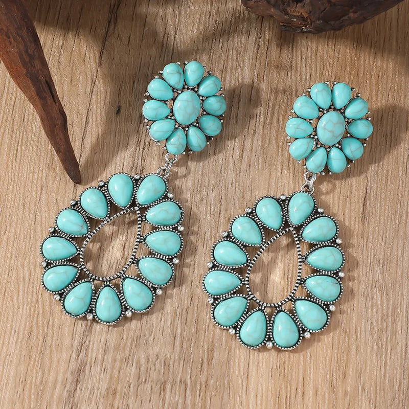 1 Pair Vacation Bohemian Round Water Droplets Inlay Alloy December Birthstone Turquoise Drop Earrings