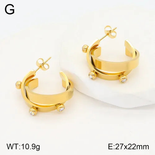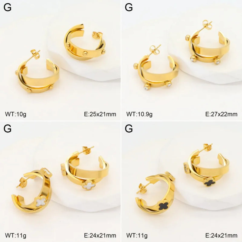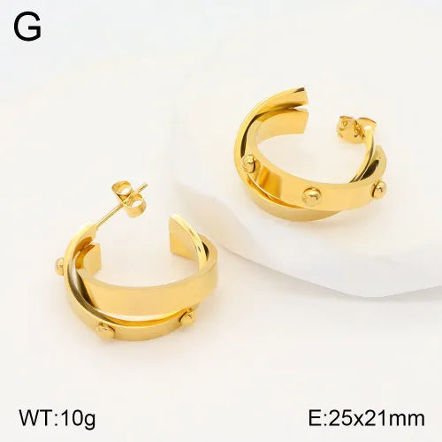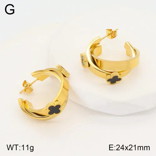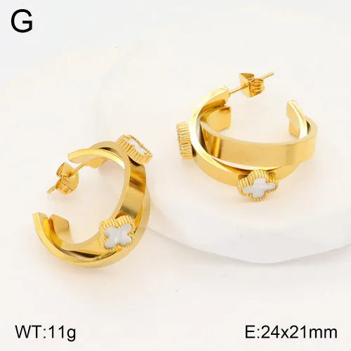 1 Pair Vacation Classic Style C Shape Solid Color Flower 304 Stainless Steel 18K Gold Plated Backs Ear Studs