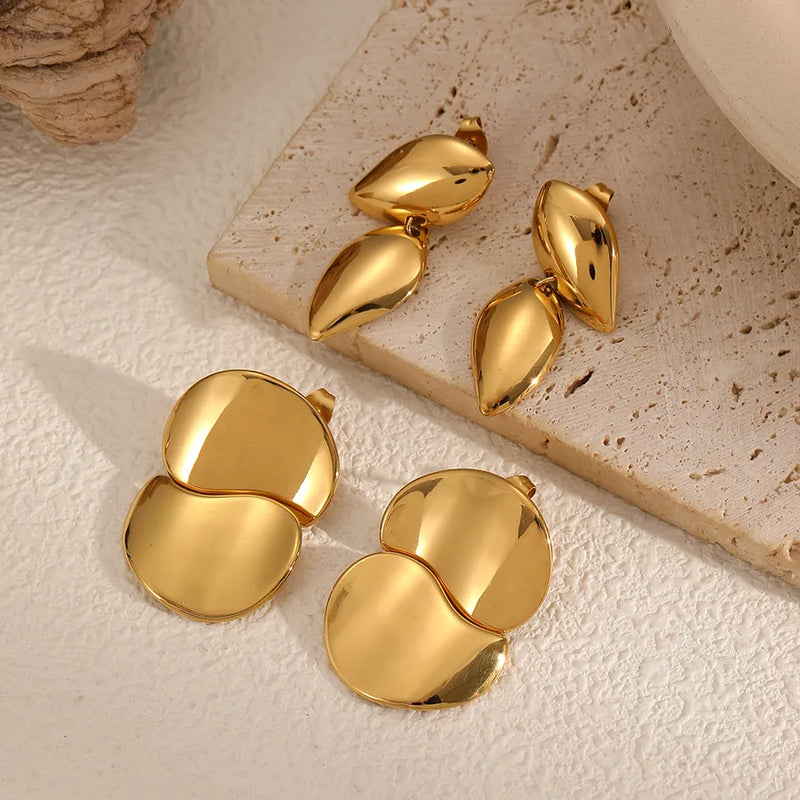1 Pair Vacation Geometric Polishing Plating 304 Stainless Steel Ear Studs