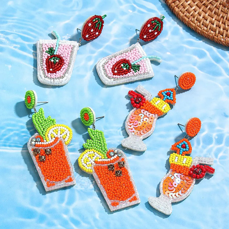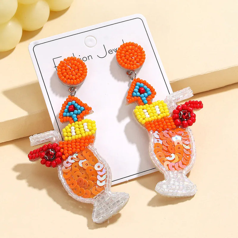 Orange Fruit Drink Cup Sequined Bead Earrings