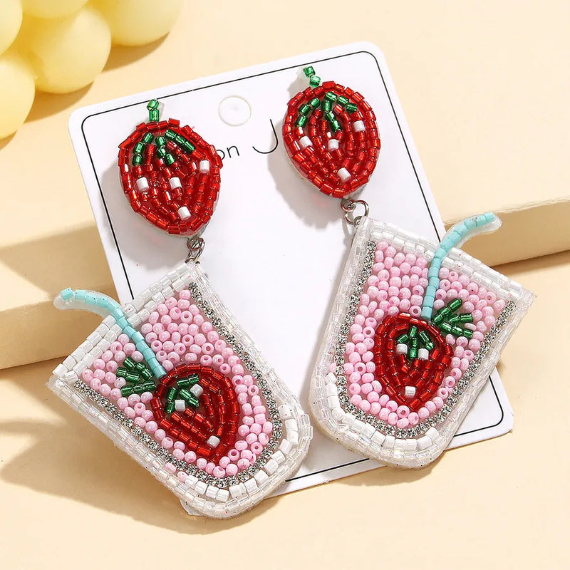 1 Pair Vintage Style Bohemian Juice Strawberry Beaded Sequins Inlay Seed Bead Rhinestones Drop Earrings
