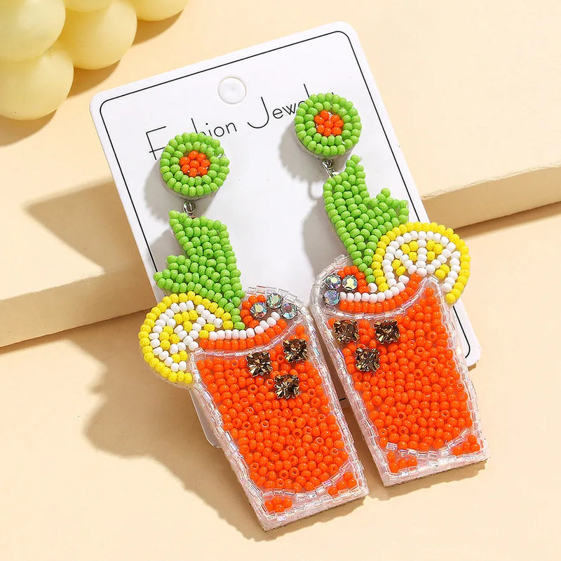 Orange Lemon Fruit Drink Cup Bead Earrings
