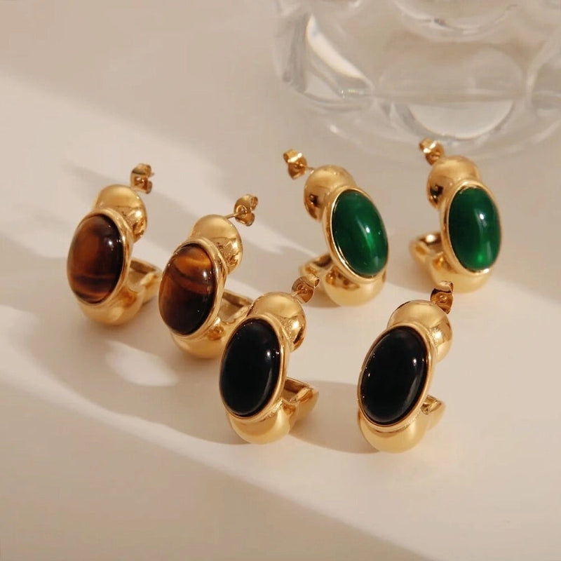 1 Pair Vintage Style Classic Style C Shape Plating Inlay 304 Stainless Steel Acrylic Natural Stone Tiger Eye 18K Gold Plated Ear Studs