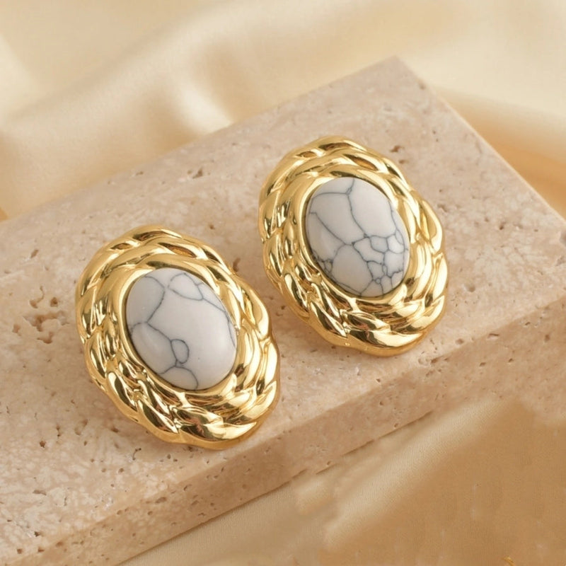 1 Pair Vintage Style Classic Style Oval 304 Stainless Steel 18K Gold Plated Ear Studs
