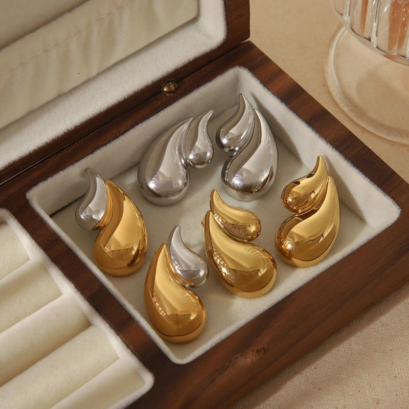 1 Pair Vintage Style Classic Style Water Droplets Mixed Metal Plating 304 Stainless Steel 18K Gold Plated Ear Studs