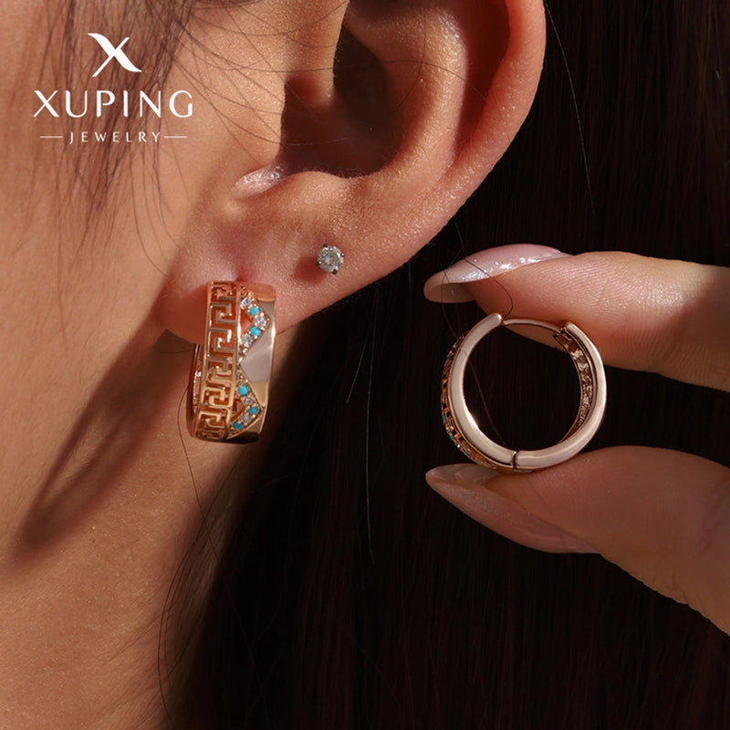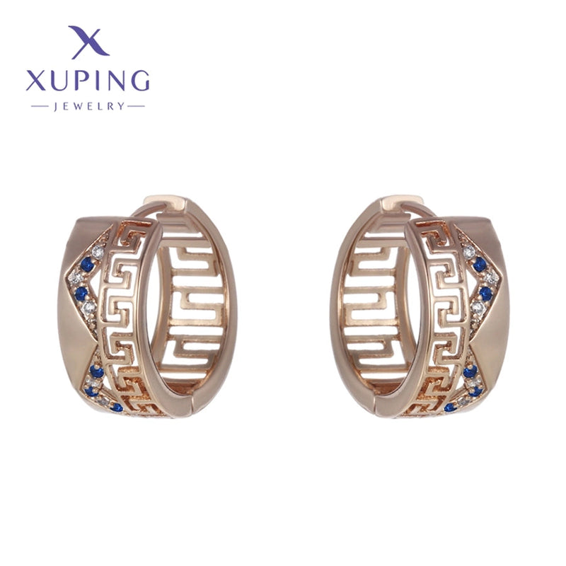 1 Pair XUPING Simple Style Circle Plating Inlay Copper Artificial Gemstones 18K Gold Plated Earrings