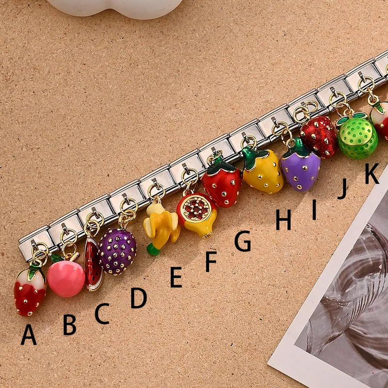 1 Pc/Package 10x9mm 304 Stainless Steel Copper Zircon 18K Gold Plated Fruit Strawberry Watermelon Polished DIY Jewelry Accessories Italian Charms