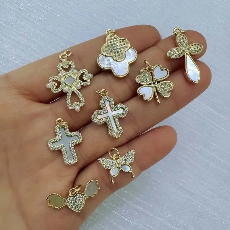 1 Piece 14mm-20mm Copper Acrylic Imitation Pearl Zircon 18K Gold Plated Four Leaf Clover Heart of angel Heart Shape Pendant DIY Jewelry Accessories